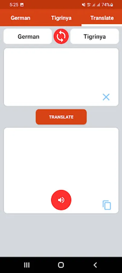 Translate words and phrases: You can translate words and phrases between Tigrinya and German in a single tap.