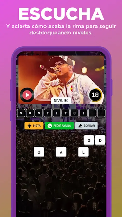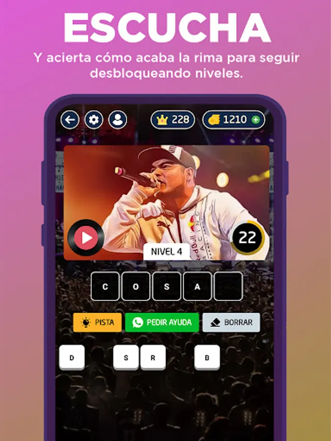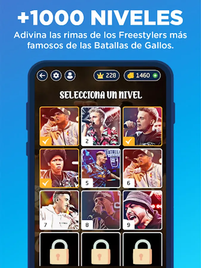 Accept the challenge: download our game and crown yourself as the person who knows the most about the rhymes of the best MCs on the scene and the most famous competitions in the world such as: RedBull Battle of the Roosters, Freestyle Master Series (FMS), The Fifth Step, God Level, Battle Of Masters (BDM) and others that we will be adding over time.