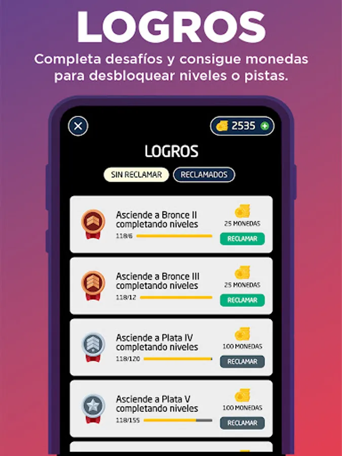 Keep playing and completing levels to increase your game rank and show off your level. You will also be able to unlock achievements and get coins to consume in the game.