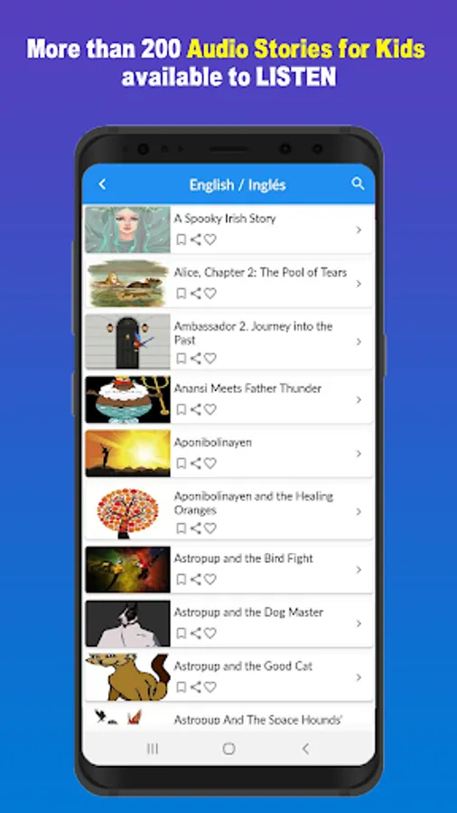 If you see all these features of the english listening for kids app and seeing the most listened stories audio ranking within our app, you still haven't downloaded this app on your Android device, we don't know what you're waiting for. Click Install this App on your device and enjoy the best kids stories in english free audio of all ages, even any adult can relive their childhood by listening to these audio stories with values and morals for free.