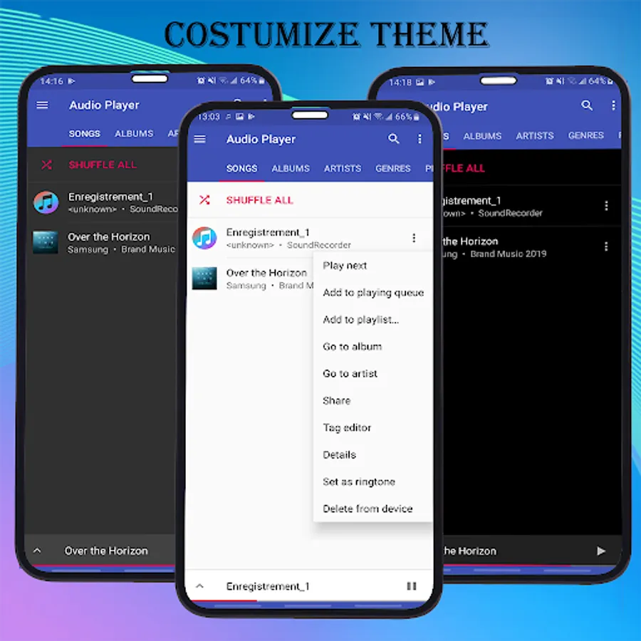 Introducing the ultimate audio player app for Android, designed for a seamless listening experience. With its beautiful and user-friendly interface, you can easily navigate and play your favorite music, podcasts, and audiobooks. The app supports multiple formats and allows for easy organization of your media library. You can also customize your listening experience with the built-in equalizer and bass boost.