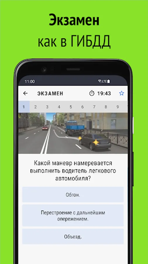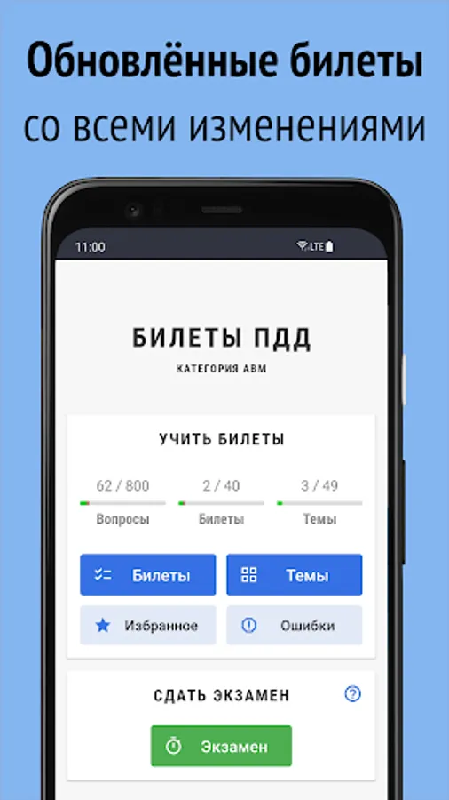 The ticket is considered mastered if no more than two errors were made during the test. Passed traffic rules tickets are marked in green.