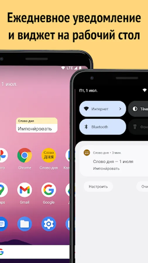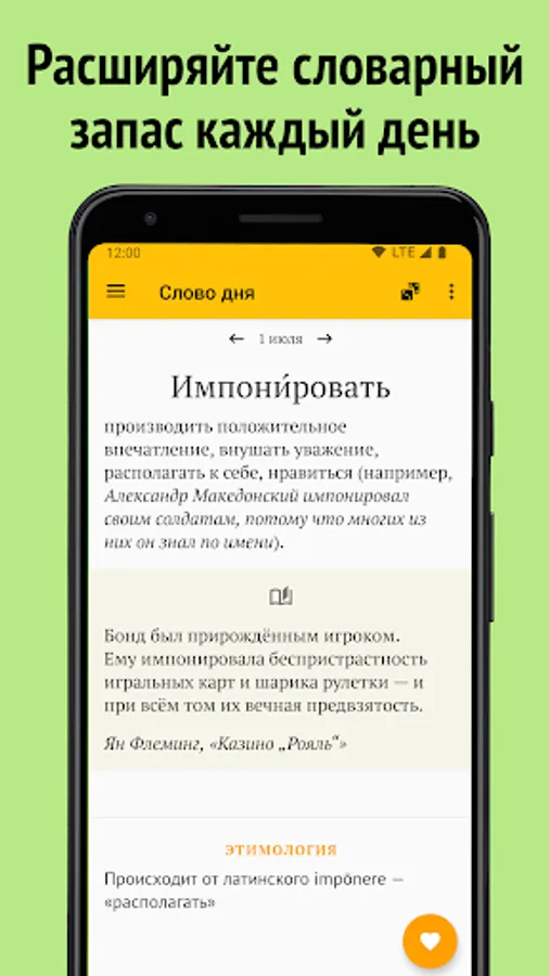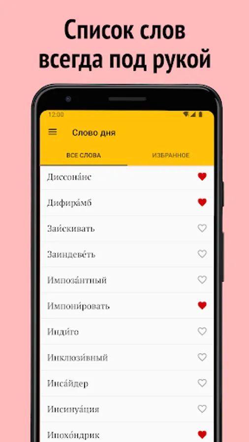 📌 You can always add words to "favorites" to come back to them later. In addition, you can install a widget on your desktop, the word of the day will appear in it. In the settings, you can set up a daily notification of a new word.
