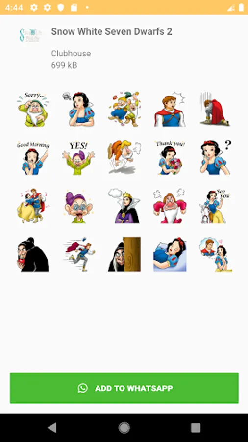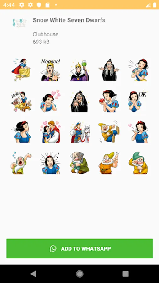 Snow White 7 Dwarfs Stickers are provided as image or WAStickers.
