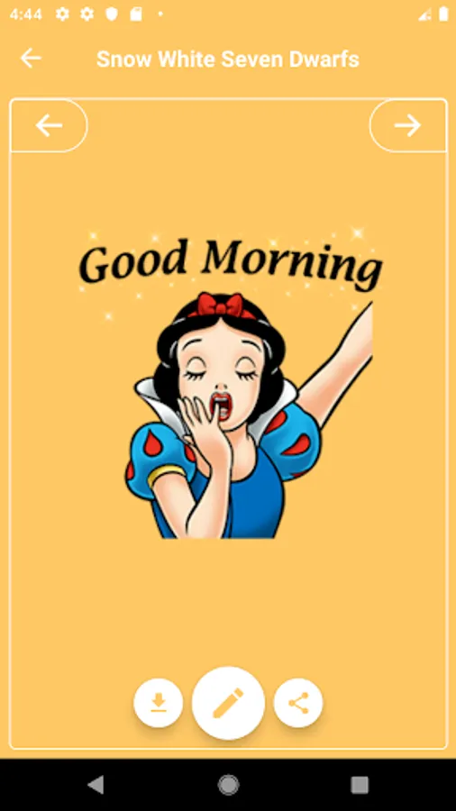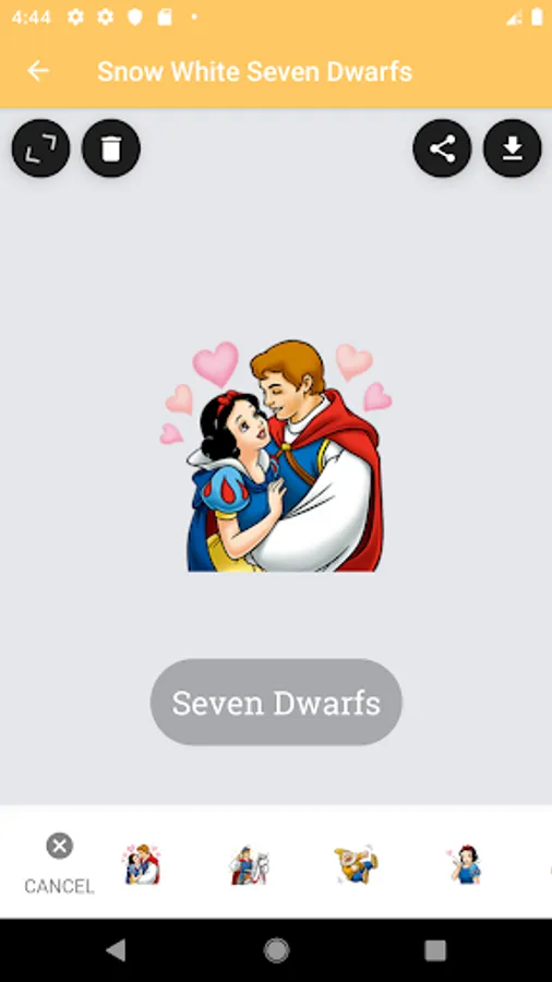 Snow White 7 Dwarfs app is allowed to make your photo with a sticker. Also, you can share to your loved once at one click.