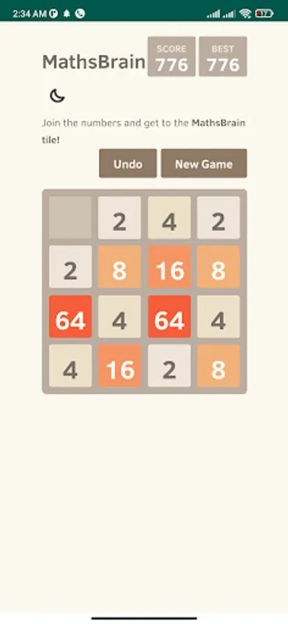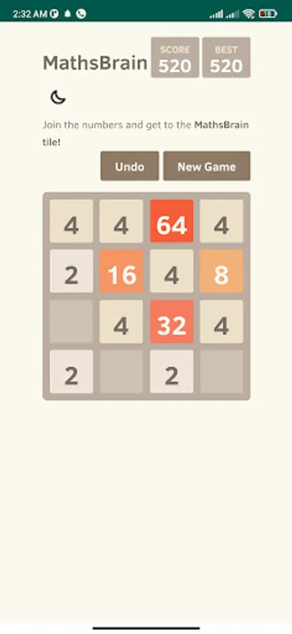 The playing field is a square 4x4. You need to move and join the numbers to get to the "MathsBrain" tile (you can proceed further).
