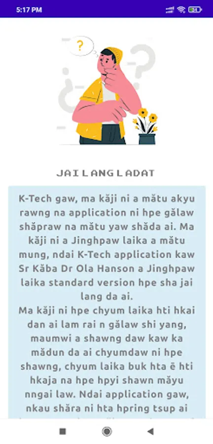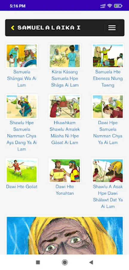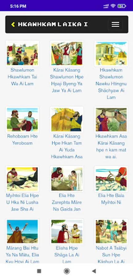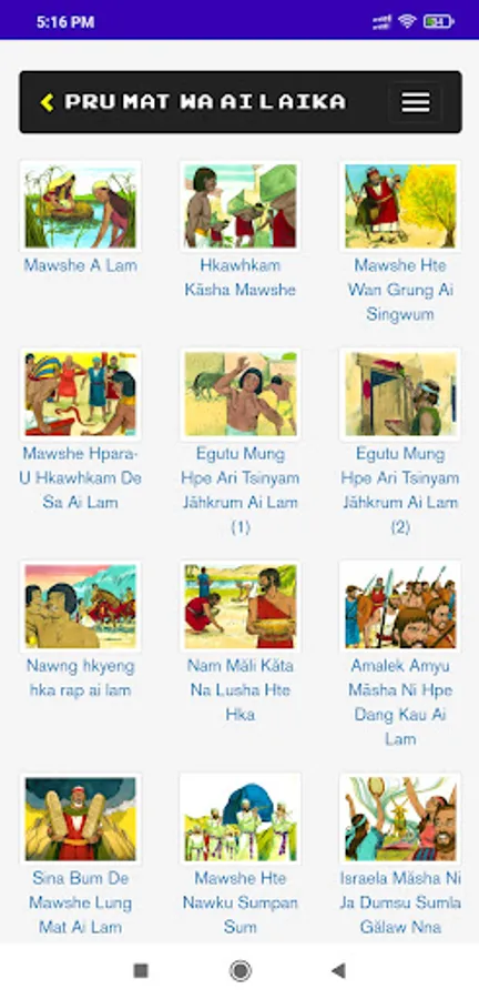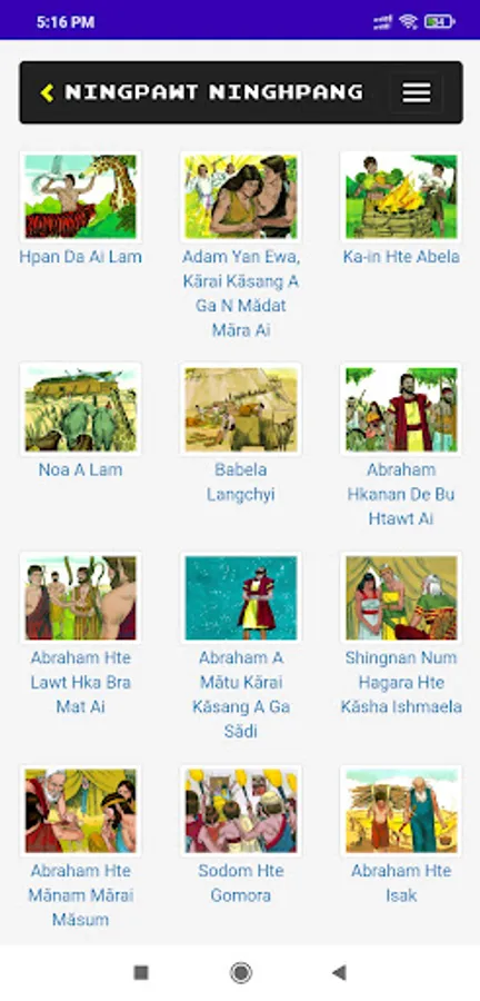 I have developed this app for those who are currently teaching Sunday Schools in church at town area or any other place (such as no internet area). This app can be used by offline mode, so that you can use it whenever you want. In this app, about 131 Old Testament Stories have been written in Kachin Hanson Standard Version. Hope, this app can help your theology teaching to your children.