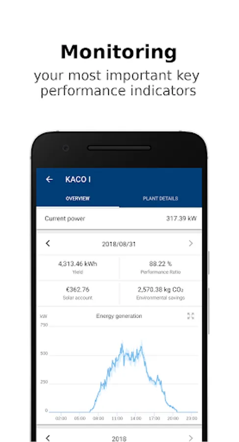 In addition to key metrics such as energy and performance ratio, you can see the power of your plants in real time.