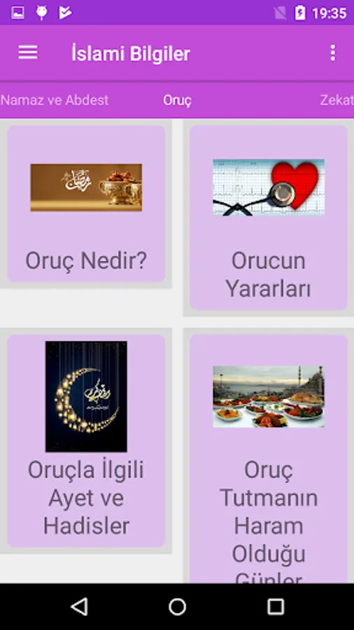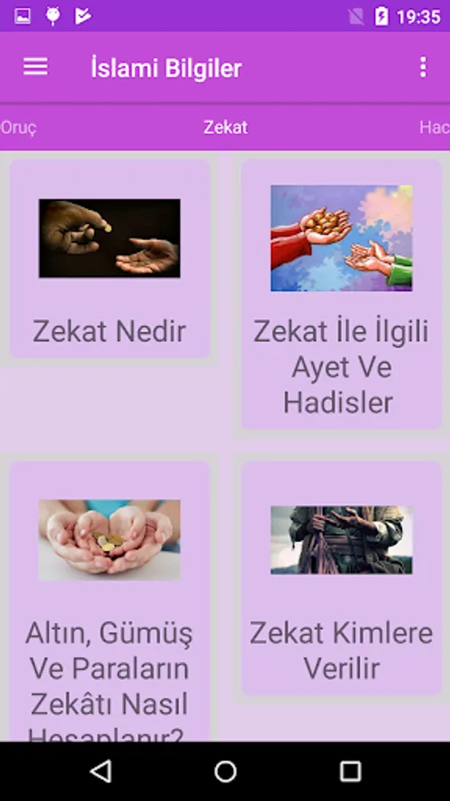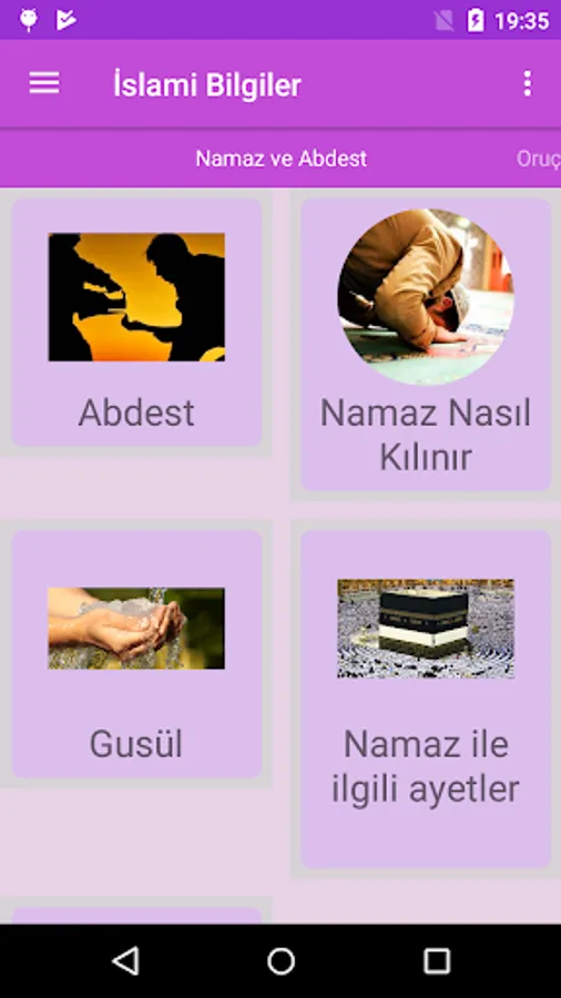 You can find answers to questions about how Abdest and Prayer are done in content, how zakat is given, how to give pilgrimage.