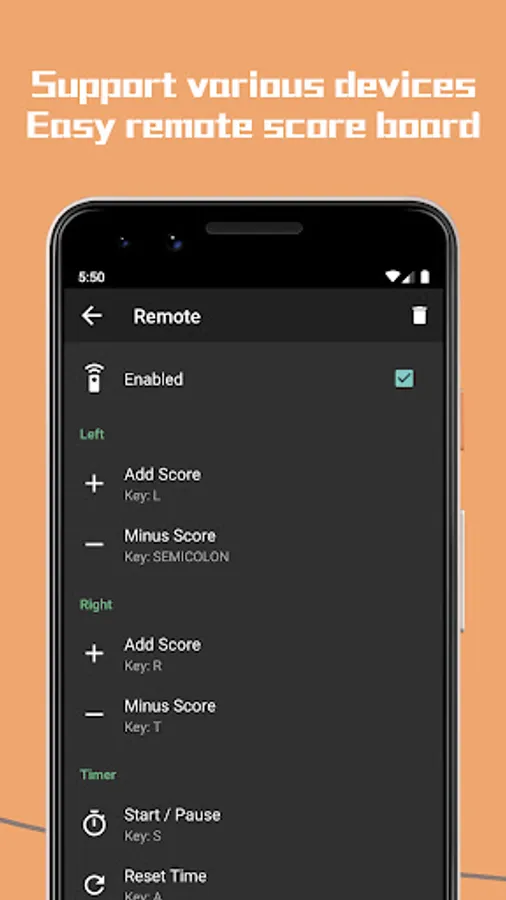 - Various devices such as Bluetooth, 2.4G keyboard or mouse are supported so that you can easily control the scoreboard remotely.
