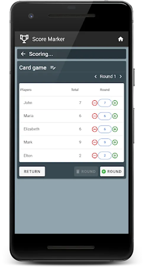 The idea is the Score Counter replace the paper and pen, create your game and registry the scores directly from your Smartphone!