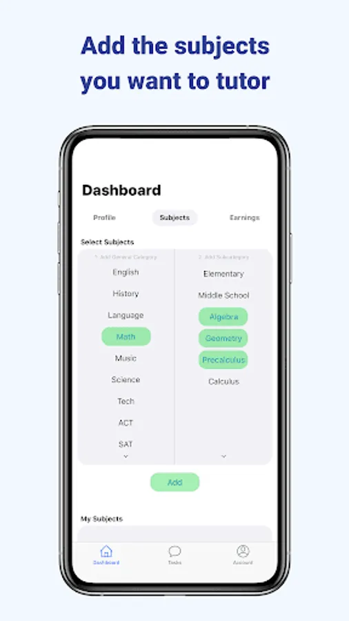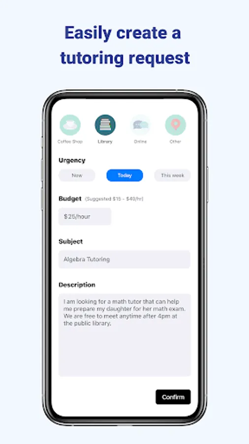 The Kadama App makes it easy for students and parents to instantly connect with expert tutors for in-person and online lessons. Finding a tutor has never been easier. You can select from a wide variety of subjects, set your own budget, and get tutored at the time and place of your choosing.