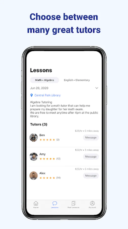 - Find your ideal tutor: Easily compare tutors by looking at their ratings/reviews, background check verification, and experience