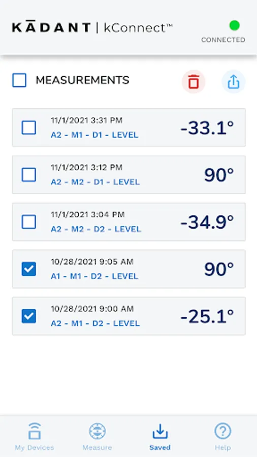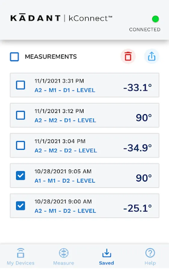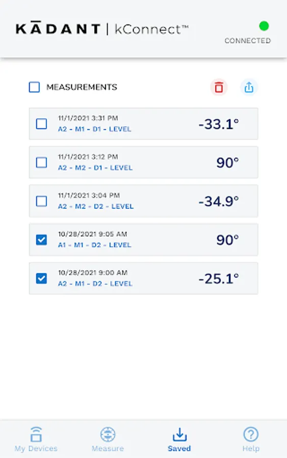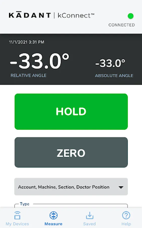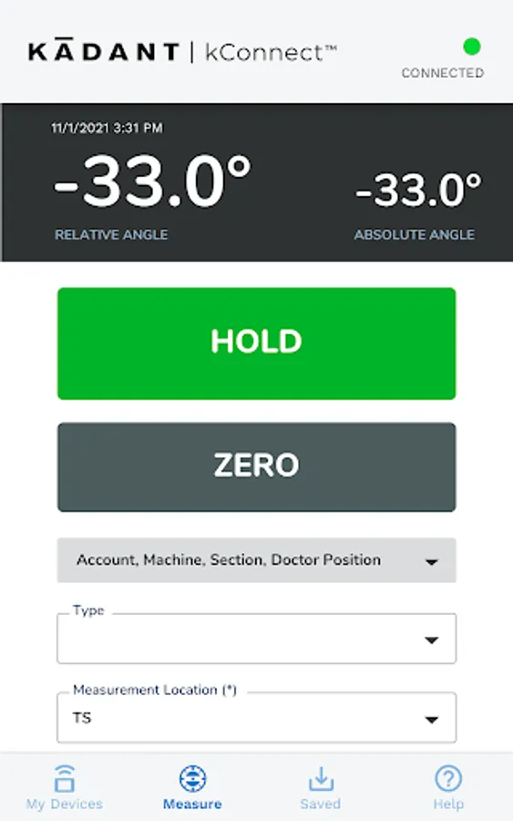 This app connects your Kadant AngleSet™ gauge with Bluetooth output to your iPhone. The Kadant AngleSet gauge is used to measure proper angles for setting doctor, roll cleaning, and scraping blades. The app features an active angle display from the gauge, hold feature, zero feature for relative angle measurements, type of measurement being taken, measurement location, and memory storage of angle readings. The user can also add free text metadata for each measurement (account, machine, section/application). Each measurement taken along with metadata can be saved. Saved measurements will be visible on the measurements screen and will be listed in order of most recent to oldest. Saved angle readings can be sent via email as a CSV file.