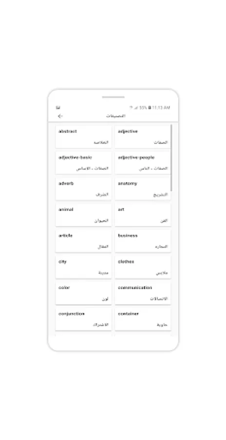 Classification of words according to nouns, verbs, medicine, foods, etc.