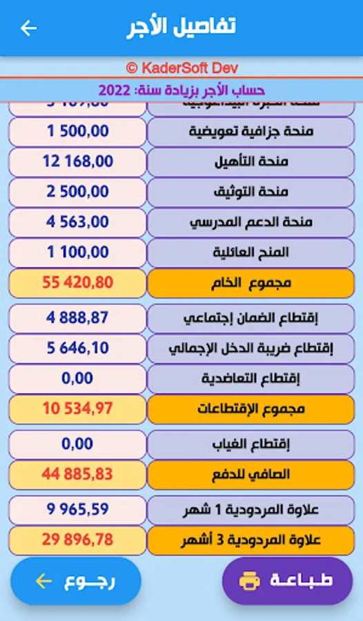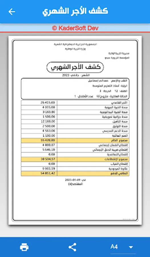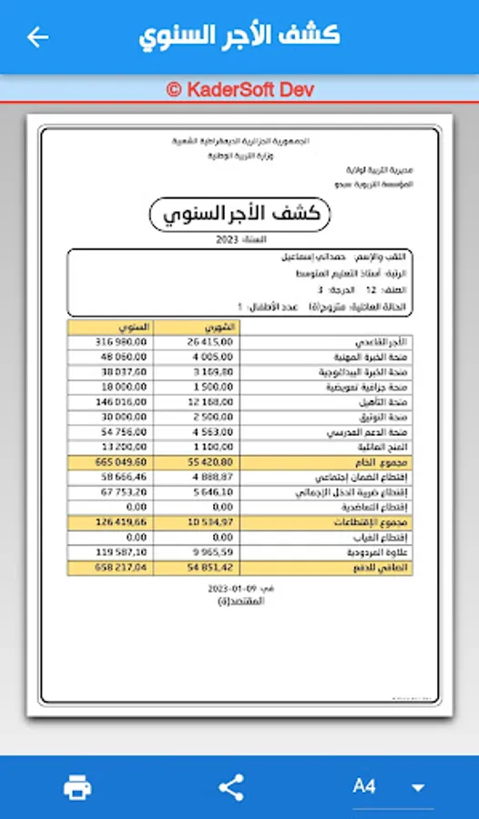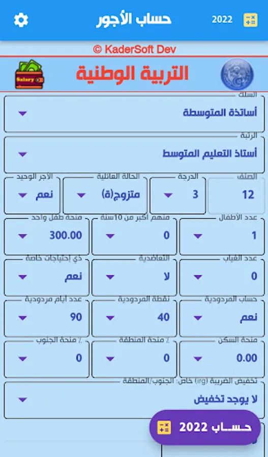 It is a free application that calculates wages for workers in the national education sector in Algeria, and works on all Android devices. It helps any worker to see and know the details of his salary, including grants, bonuses, compensation and deductions, and it also enables him to print the monthly and annual wage statement.