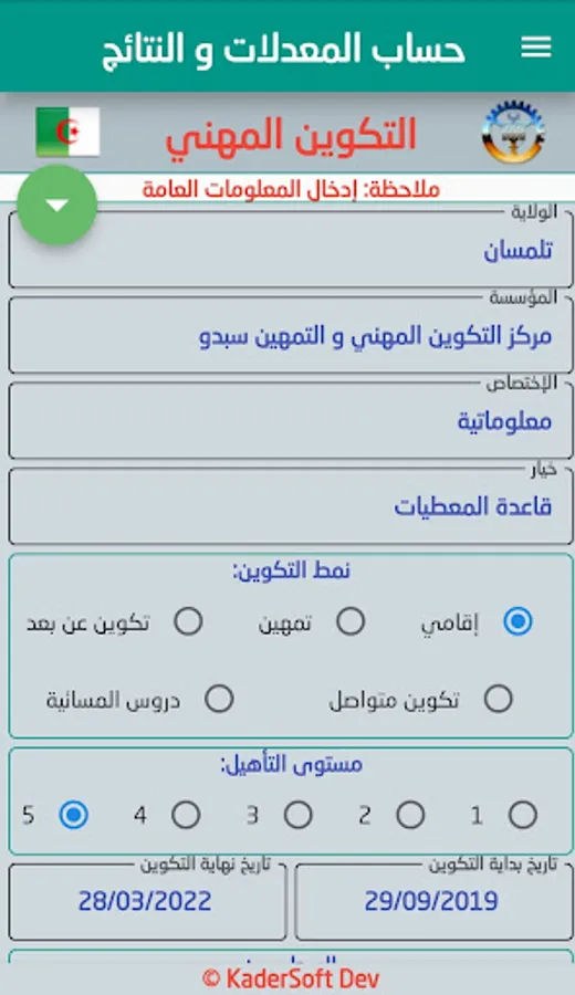 This application is accomplished and developed by Prof. s. Boubaker is an engineer and professor at the Center for Vocational Training and Apprenticeship Sebdo - Tlemcen-