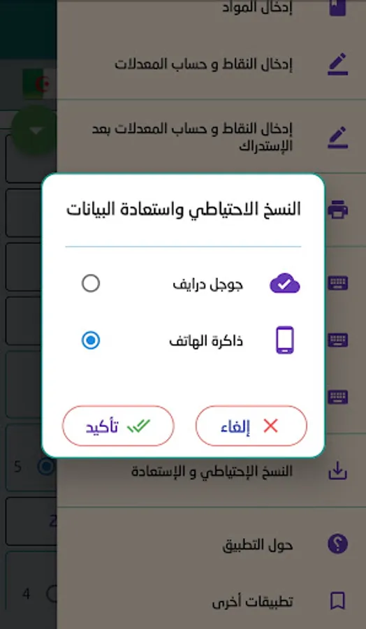 A very important feature, it allows you to make backup copies to the phone memory, to the computer memory or to your Google Drive account, thanks to which you store data for several hexes ... etc, and restore these copies in case of need, whether after deleting the application from your phone or your computer or even change the phone or computer where the backups are stored in your Google Drive account online.