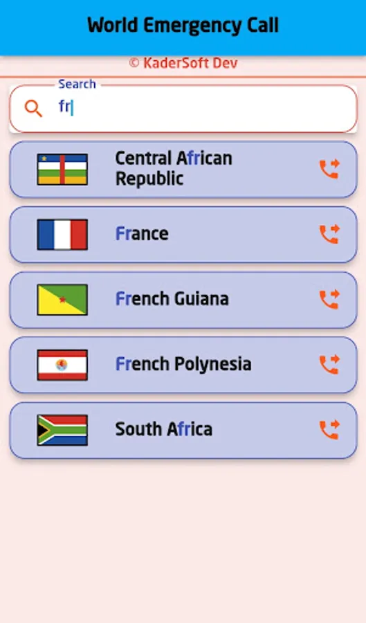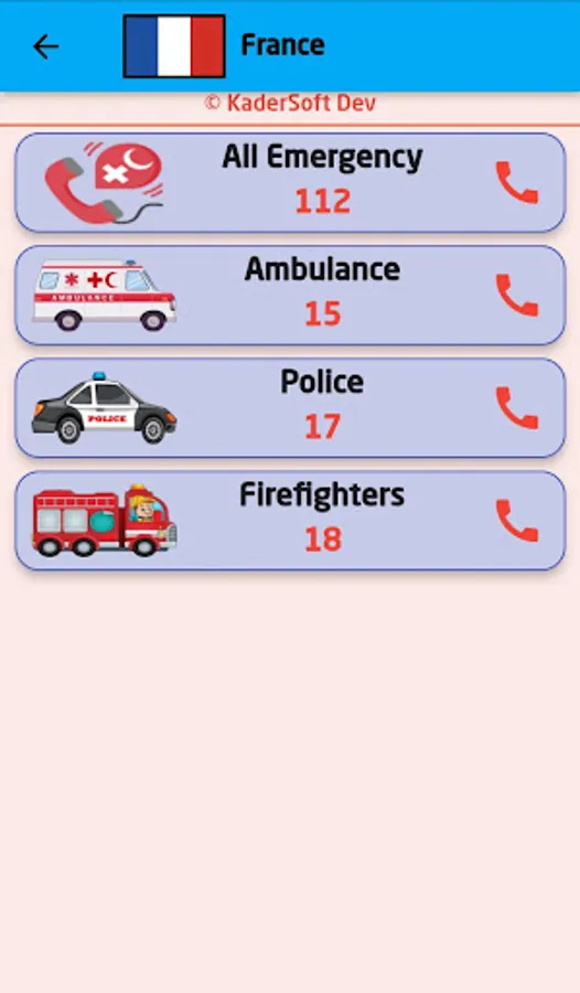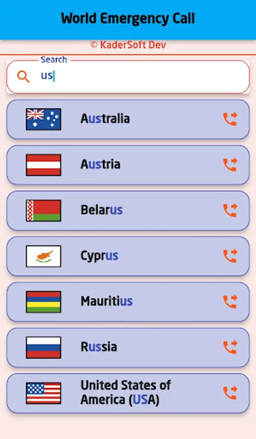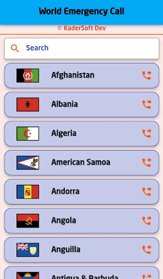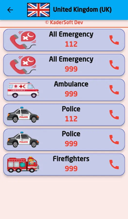 Even the person who cannot read names and numbers can make calls using this app because we have the flag of the country, the image of the service you need.