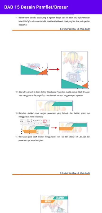 This application contains 15 chapters on graphic design, which aims to be a means for people who are still laymen and beginners in learning graphic design.