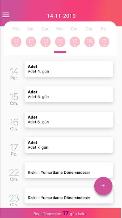 By recording the last menstrual date on the calendar, you can see how many days are left to your menstruation, when you have ovulation days, which day is the most risky ovulation period.