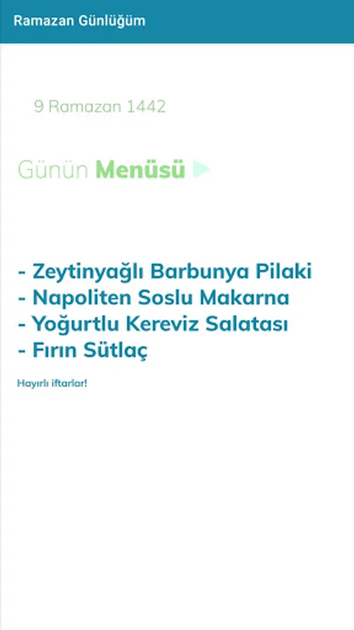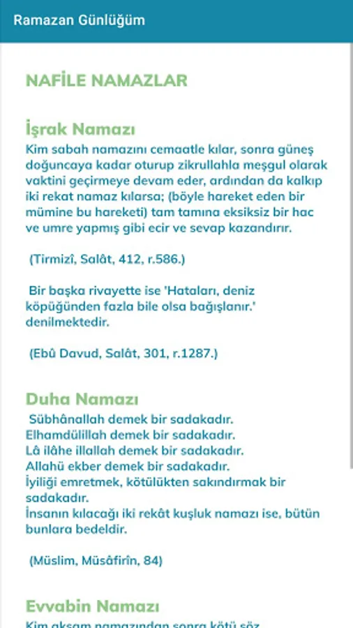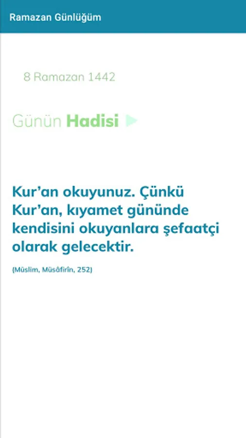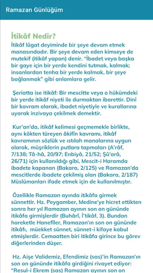In the Ramadan Diary application, it is an application that includes a healthy food menu where you will find answers to the question of what to cook every day, with sections consisting of verses, hadith, prayer, rosary and wise words that will reinforce your spirituality during the month of Ramadan. It is an application where you will check yourself at the end of the day and find all kinds of information about itikaf, which is a very special worship, whose circumcision is accepted as muakkadah, in the month of Ramadan.