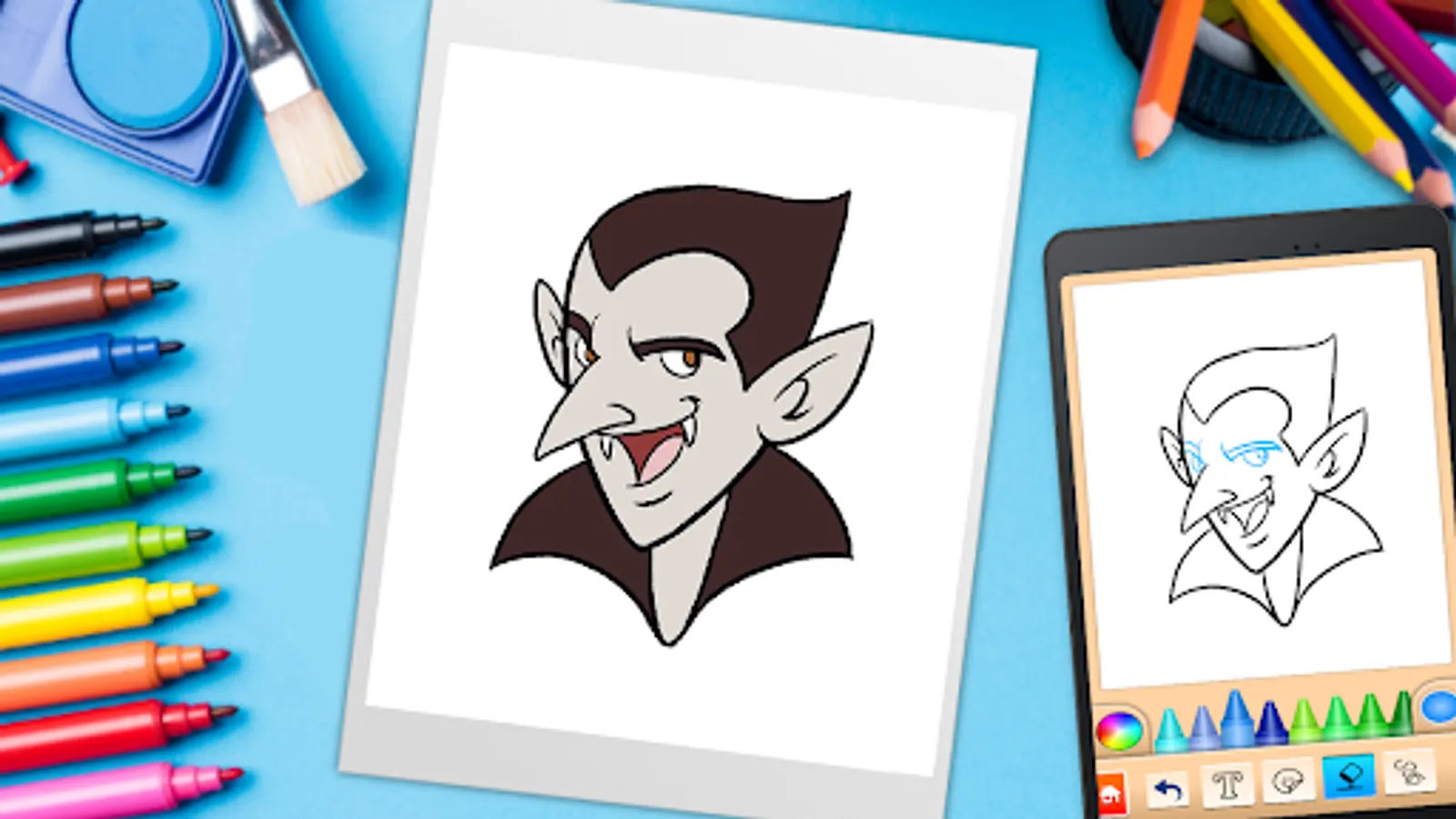 Learn to Draw Halloweens Characters is perfect app for those who want to be an artist and love drawing Halloweens Characters. This App teaches you how to draw Halloweens Characters in simple steps and improve your confidence of drawing and coloring.