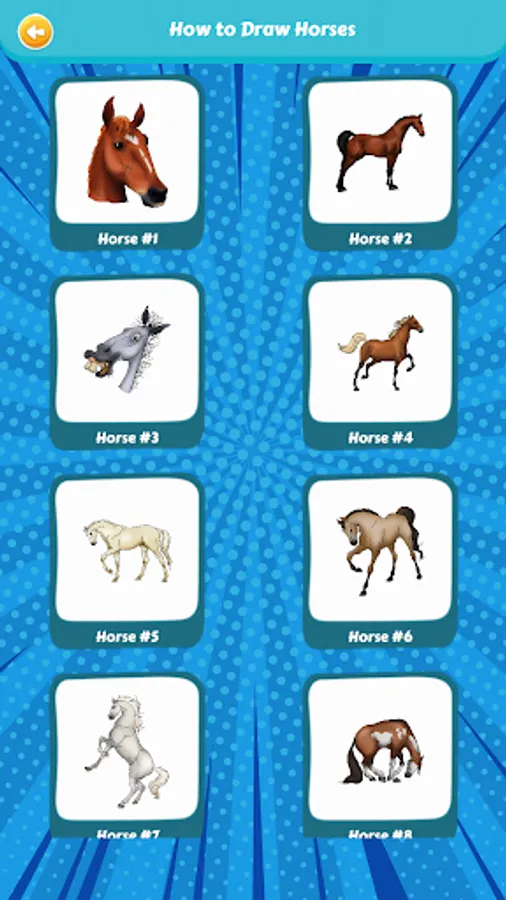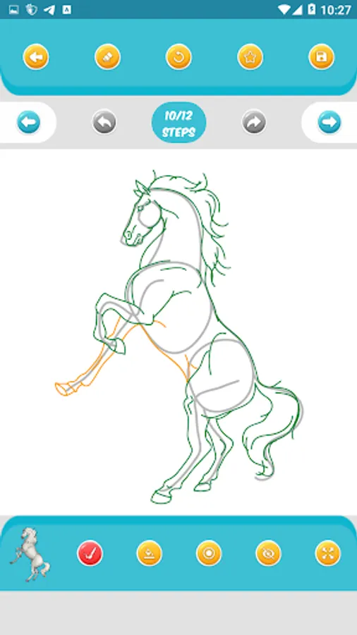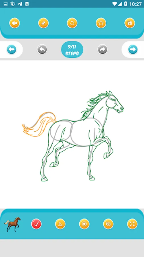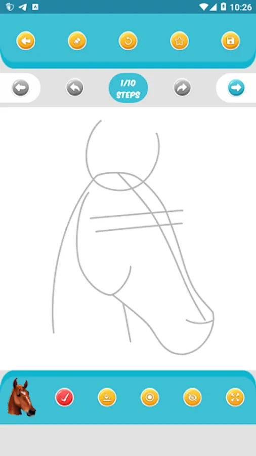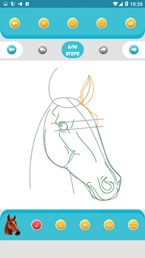 In this drawing lessons App we’ll show you how to draw a Horse in 8 easy steps. This Free step by step lessons progressively builds upon each previous step until you get to the final rendering of the horse.