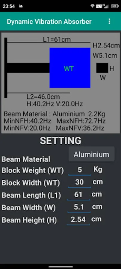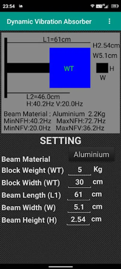 2. Enter the weight of the block in Kg to act as the frequency tuner.