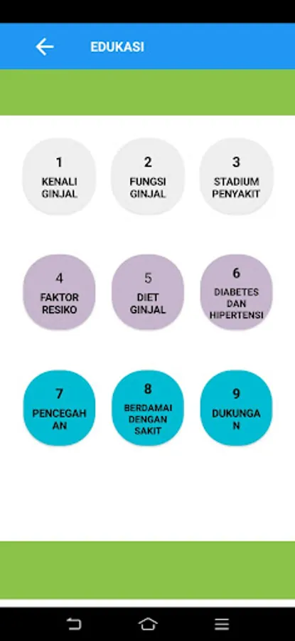 This application contains the self-management needed by CKD patients which consists of a series of self-managements that start from conducting assessments, motivating patients to actively participate in their treatment through a series of education available in this application