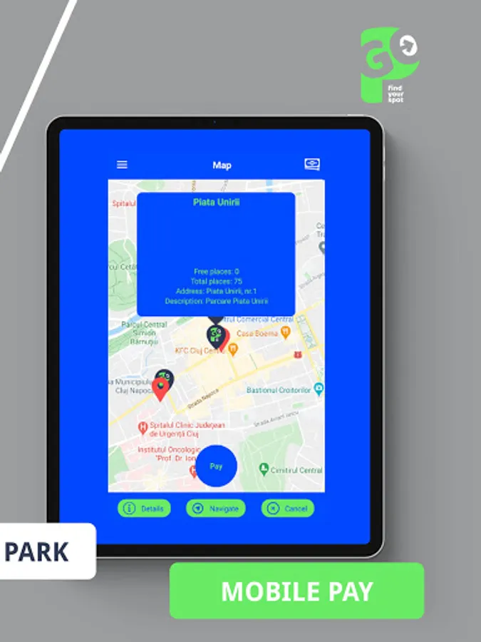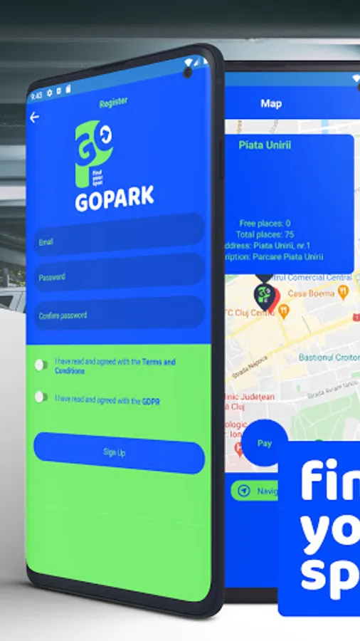 GOPARK app has been specially created to help drivers find and pay quickly, directly from the app, the parking space, without wasting time at the payment houses or sitting in the queues formed at the entrance or exit of the parking lot.
