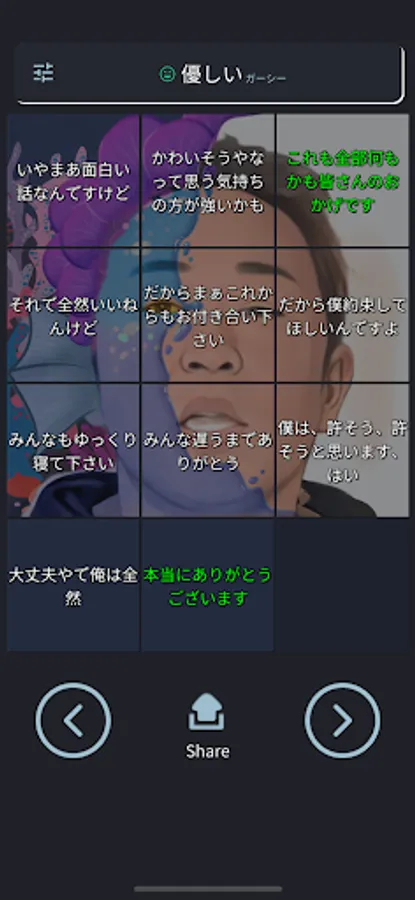 According to the theme, "sharp", "correct theory", "gentle", "cute", "praise", "aizuchi", "greeting", etc.