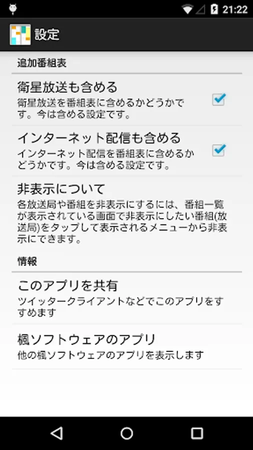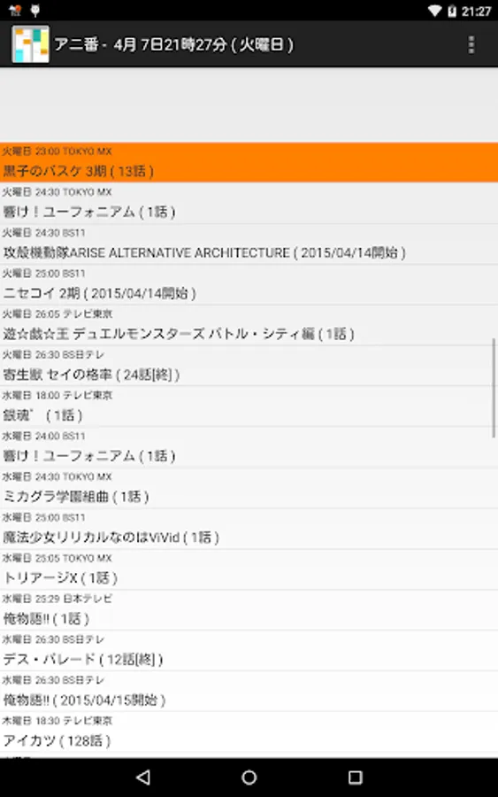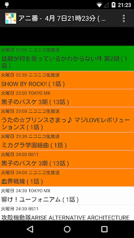 アニメの時間を確認するための番組表アプリです。