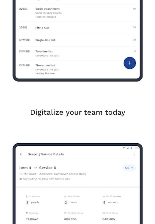 Our solution is adapted for mobile and web platforms, with the flexibility to also work offline for websites and industrial areas without an internet connection. Synchronizing information in real time, while providing an overview of all work that is being performed.