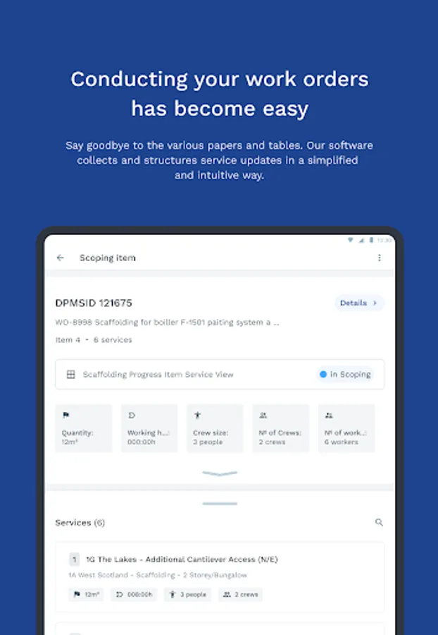 The DPMS solution is able to assist in the control of all operational services performed daily in Industrial units. From the assembly of scaffolding, through the services of surface protection (painting and fireproofing), thermal and acoustic insulation, electromechanical, etc., and including the inspections necessary to guarantee the quality in the execution of these services. All of this in a digital, safer and more reliable way and also much more accessible.