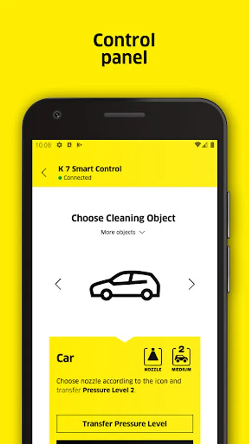 For pressure washers with Smart Control, you can adjust the settings manually or transfer the setting recommended in the application advisor for your specific cleaning situation directly to the device via Bluetooth.