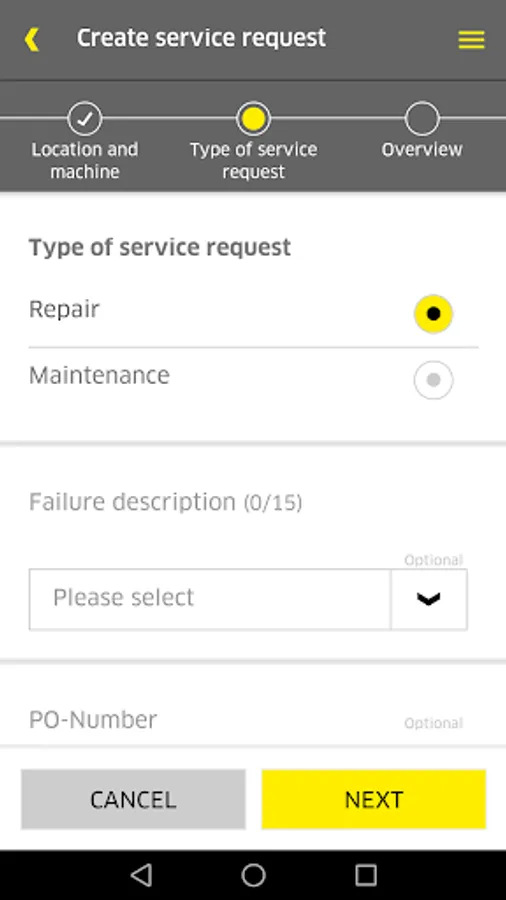 With the Kärcher Professional Service App we support commercial customers everywhere 24/7. Send us your service request quickly and easily in just three steps. Create locations & machines, describe the problem - done. Keep track of things and see the current status of your service request at any time.