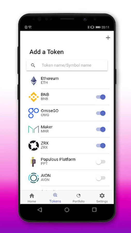 - View only highly vetted safe ERC20 compatible tokens within the app