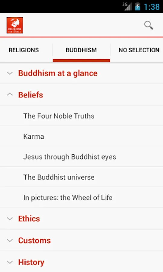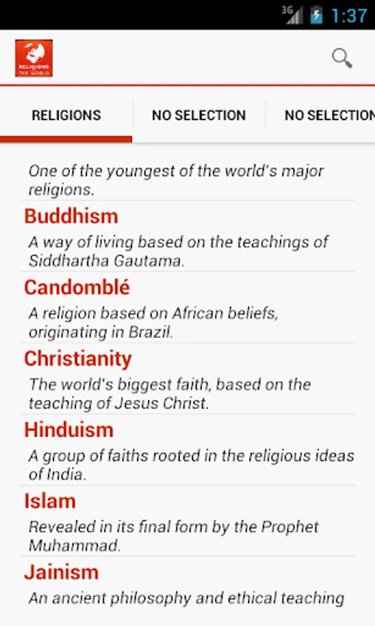 From rituals, to important people, to arts and culture this application delivers brief information about some of the more widely spread opinions of mankind.