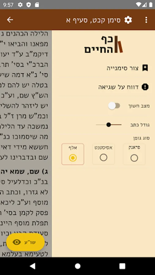 For nearly forty years, from the age of thirty until his death, Rabbi Sofer wrote and printed his essay "Kaf HaChaim" on the Shulchan Aruch, in eight volumes on a lifestyle section and one volume on Yoreh De'a. After his death, in 5717, his sons, Shalom and Moshe Sofer, printed a new edition of the essay, and added another volume on Yoreh De'a, from his manuscript. From the key to the end of the book, in the style of the book. And together with his rabbi, Rabbi Ezra Atia, he wrote the introduction to the edition. In the year 5705, the volumes of the essay were published in a new edition, including many completions Baba Tama. The book is similar in structure to a "clear mishnah," in that they both clarify the words of the Shulchan Aruch and the rulings on the topics discussed, based on the halakhic literature throughout the generations; But unlike the clear mishnah, the "spoon of life" more expands and brings the variety of opinions on the matter, and ultimately decisive. Also in contrast to the "clear mishnah", the "Cape of Life" also extensively brings the accepted methods and rulings, in particular the Aryan and the Rashash. In doing so, he continues the ruling method of his rabbi, Rabbi Yosef Chaim.