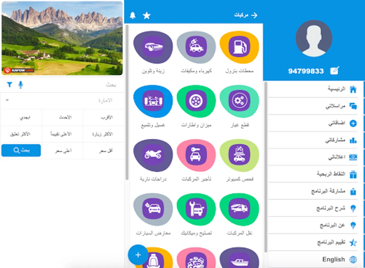 Restaurants, cafes, touristic places, amusements, cinemas and sport clubs, cultural clubs, adventure and hobbies, beaches and parks, supermarkets and bakeries, groceries and food stuff, Health and Fitness, Electronics, Animals and Petrification, Agriculture, Home Appliances, Equipment and Decor, Education, Schools, Colleges and Nursery, Distributors of Services and Merchandise, Travel Services, Government Services, gift shops, shopping centers, malls, markets, Real Estate , Insurance companies, premises clearance transactions and payment of bills, ATMs, all concerning vehicles, Motorcycles, boats and planes, mechanical and car services, distribution, gas stations, materials, commercial intermediaries, Suppliers, Villas and Houses For Rent, Offices for Rent, Villas for Sale, Land for Sale, Cars for Sale ...