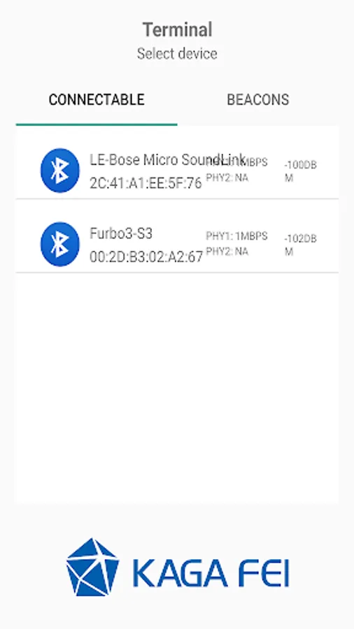 This is an evaluation application that communicates with Kaga FEI's Bluetooth🄬 low energy module.