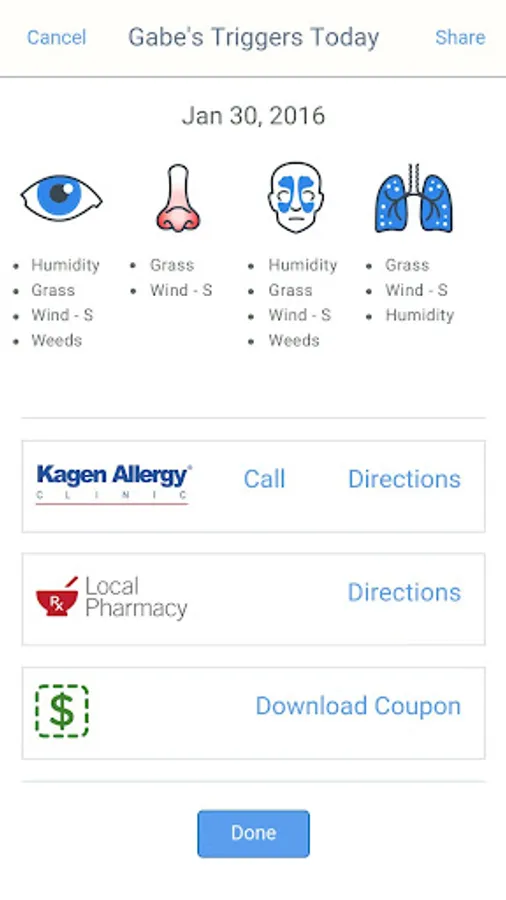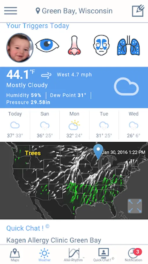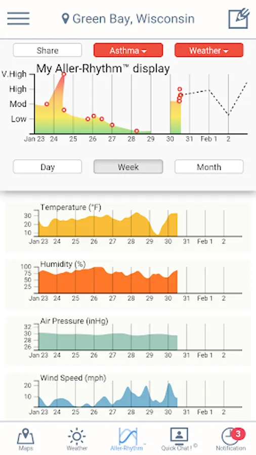Everyday you’ll see personalized wind maps that reveal your unique risks for experiencing symptoms of allergy and asthma. By seeing how the weather and your environment affect your health, you’ll be in control.