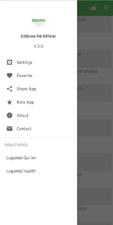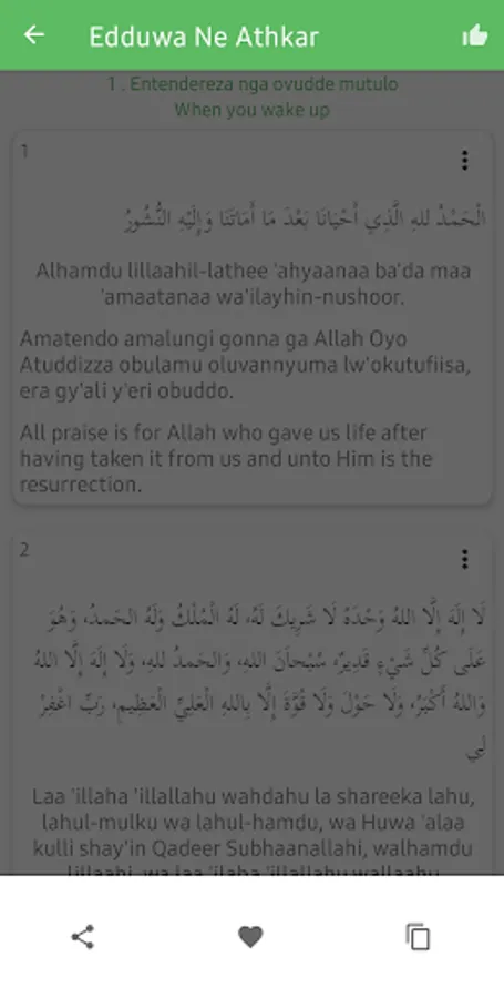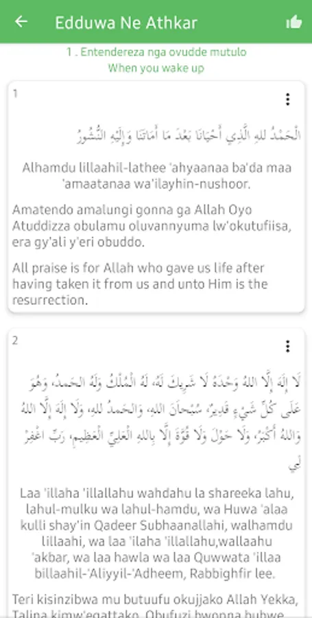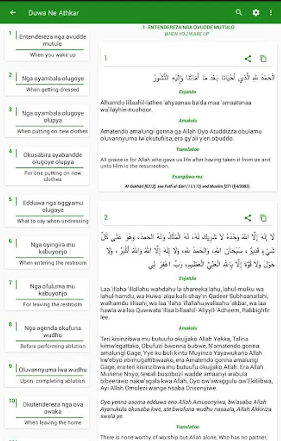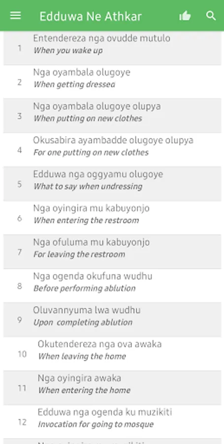 Edduwa and Athkar formerly called Yiga Edduwa has been adavanced according to uses' preference, it contains duas and and words of praise to Allah from the holy Qur'an and the saying of the prophet of Allah, Muhammad ((salla llahu 'alaihi wasalaamu). Every muslim is adived to use them in his daily life