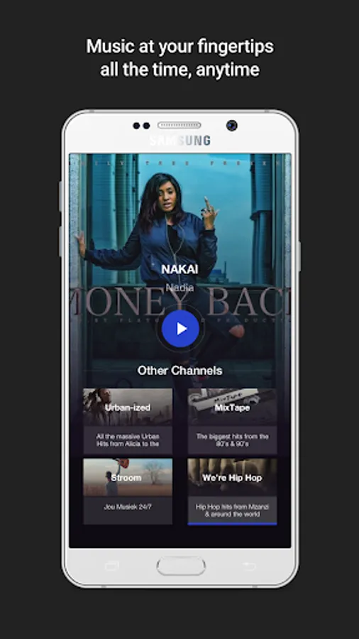 Here's what you get in one app: New Music – future big hits now; our Pop Up channel; Unapologetically Pop – all the hits from 2000 to today; DJ Jazzy D Live; Mixtape 80s | 90s; Barney Simon's Rock On; Databass with DEREK the Bandit; Mom's Heart with Jane Linley-Thomas; Stroom – Jou Musiek 24/7; House-it – where it’s all about house music; Urban-ized – all the big R&B hits and We're Hip Hop – hits from Mzanzi and around the world.