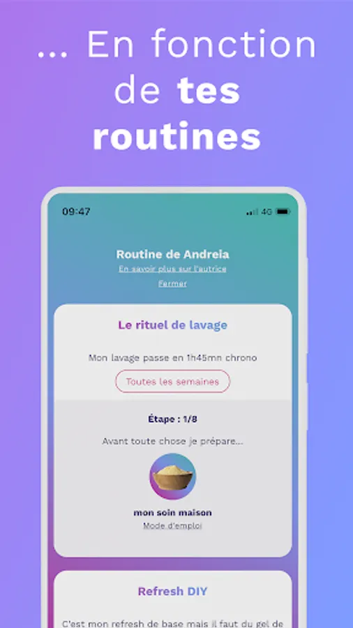 Then you have access to complete routines tailored to your hair type: products, gestures, exposure time, accessories, follow-up...