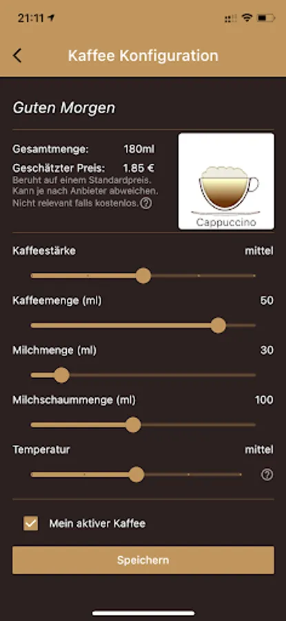 Create coffees according to your taste and have them prepared for you on supported machines.