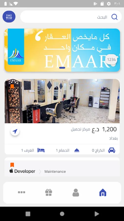 بمجرد تحميل وتنصيب التطبيق ستتمكن من مشاهدة وتصفح العقارات وكما يمكنك من انشاء حساب بأسم مكتب عقارات لتتمكن من نشر عقار خاص بك