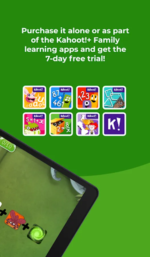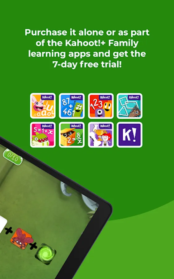 Access to the contents and functionality of this app requires a subscription to Kahoot!+ Family. The subscription starts with a 7 day free trial and can be cancelled at any time before the end of the trial.