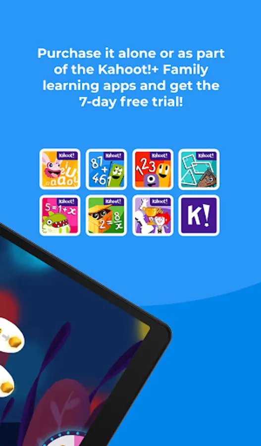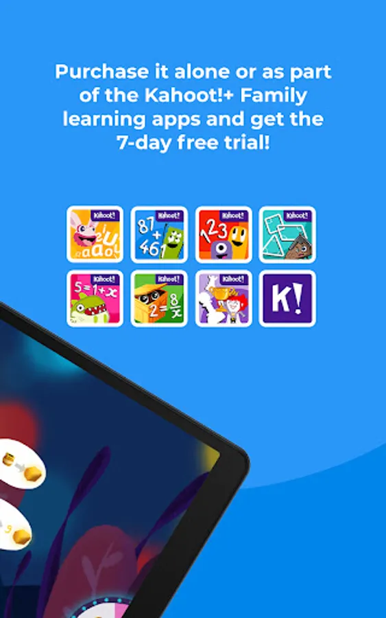 Access to the contents and functionality of this app requires a subscription to Kahoot!+ Family. The subscription starts with a 7 day free trial and can be cancelled at any time before the end of the trial.